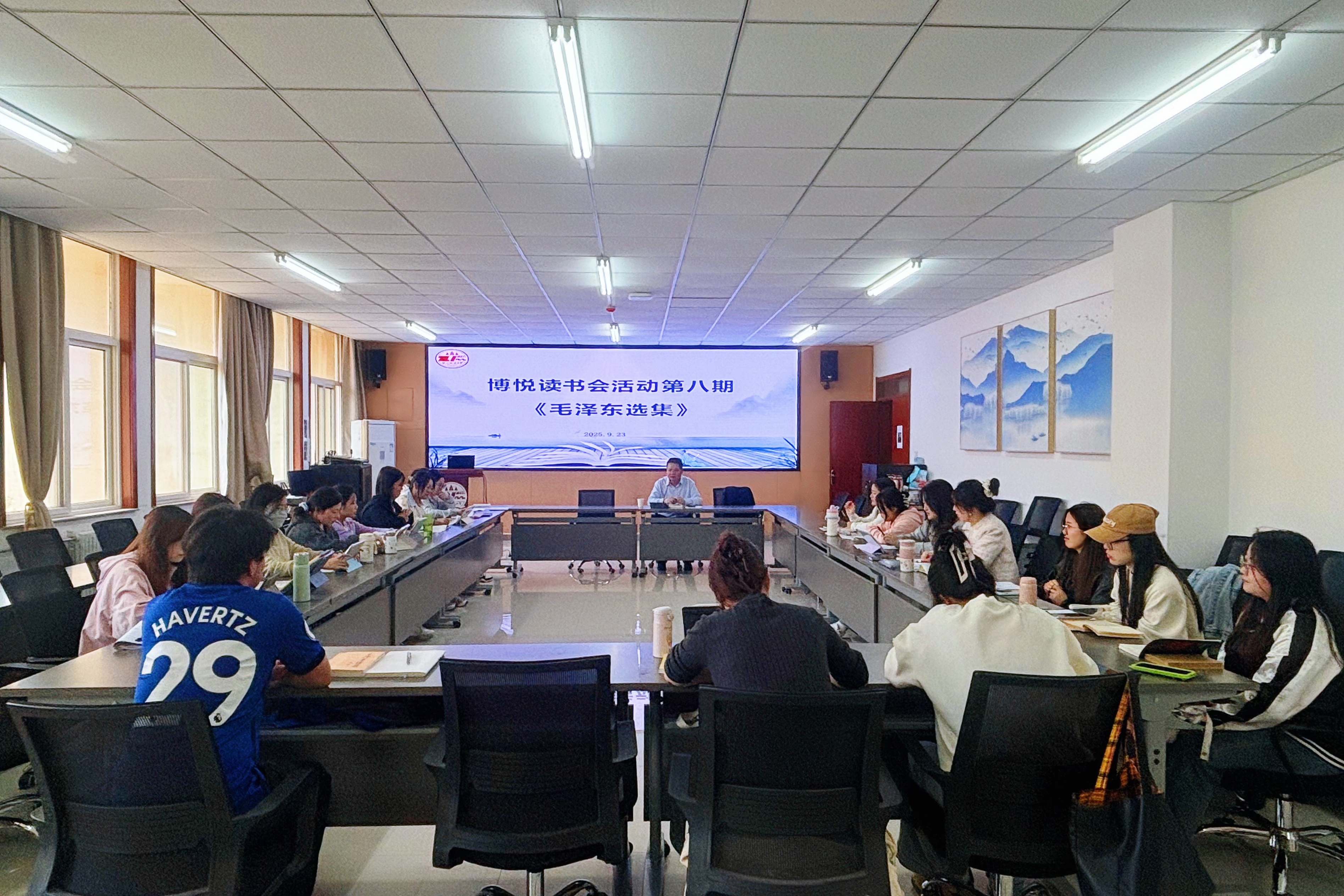 为提升研究生阅读素养,9月23日,我院思想政治教育专业博悦读书会活动第八期在诚意楼五楼会议室举办。本次读书会由刘驰教授主持,围绕《毛泽东选集》展开讨论,我院2024级和2025级思想政治教育专业研究生参加。