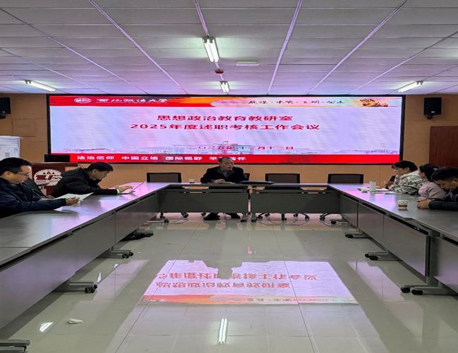 为全面总结过去一年教研室工作成果,明晰未来发展方向,思想政治教育教研室于12月12日下午在学院会议室召开了教研室年度考核述职汇报会。会议由教研室主任李贵主持,教研室全体教师参加会议。